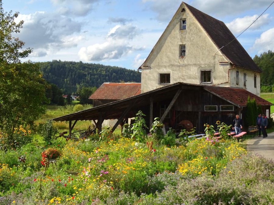 Die Mühle, die es nur einmal gibt! An der Lauchert zwischen Stetten und Hörschwag befindet sich eine der ältesten, in großen Teilen noch vollständig erhaltenen Mahl- und Sägemühlen Deutschlands. Mit ihren zwei Mühlrädern ist die Mühle eine Rarität. Vor allem wegen ihrer Antriebstechnik stellt die Mühle einen großen kulturhistorischen Wert dar.